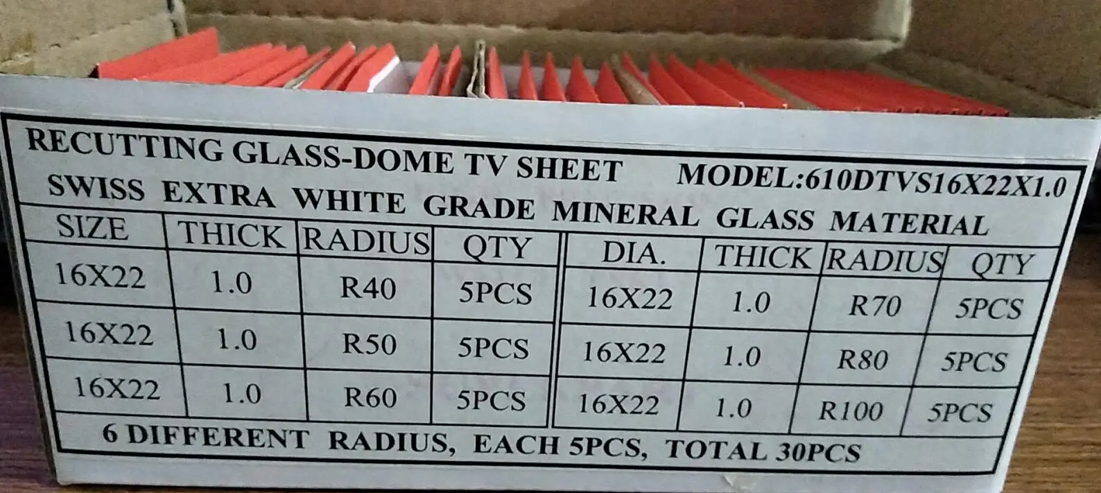 1.0mm Thickness Double Domed Rectangular Watch Crystal 16mmx22mm Curved Mineral Glass for Watchmaker W1622