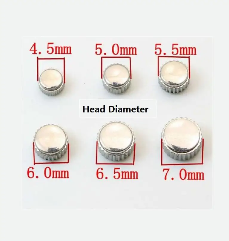 11pcs/lot Silver Color Steel Waterproof Watch Crown 3.5mm to 7.0mm Head Diameter with 2.0mm Hole W2317