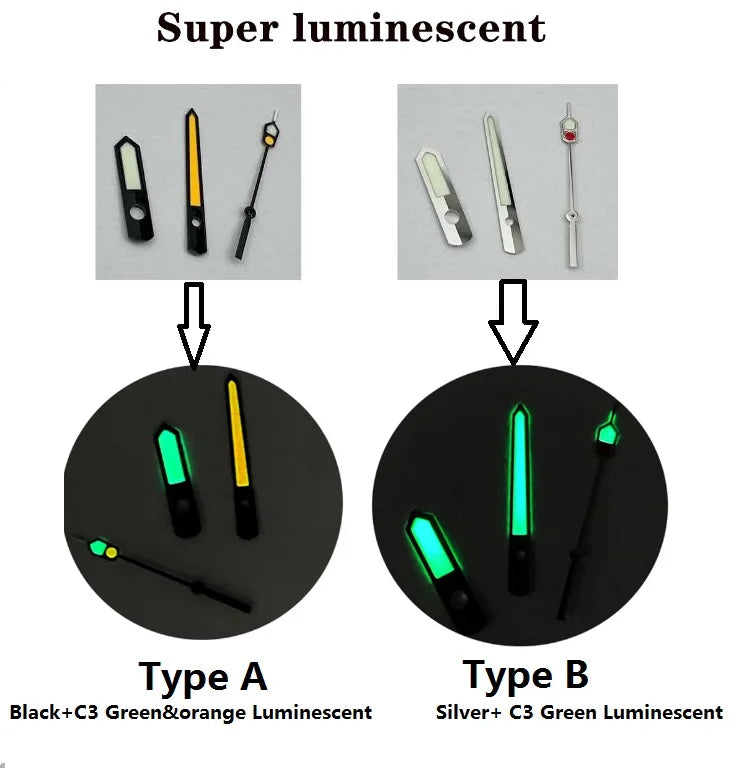 W2959 Watch Hands Kit Silver Black Color Replacement C3 Luminous for NH35 36 4R 6R SPB185J1 SPB187J1