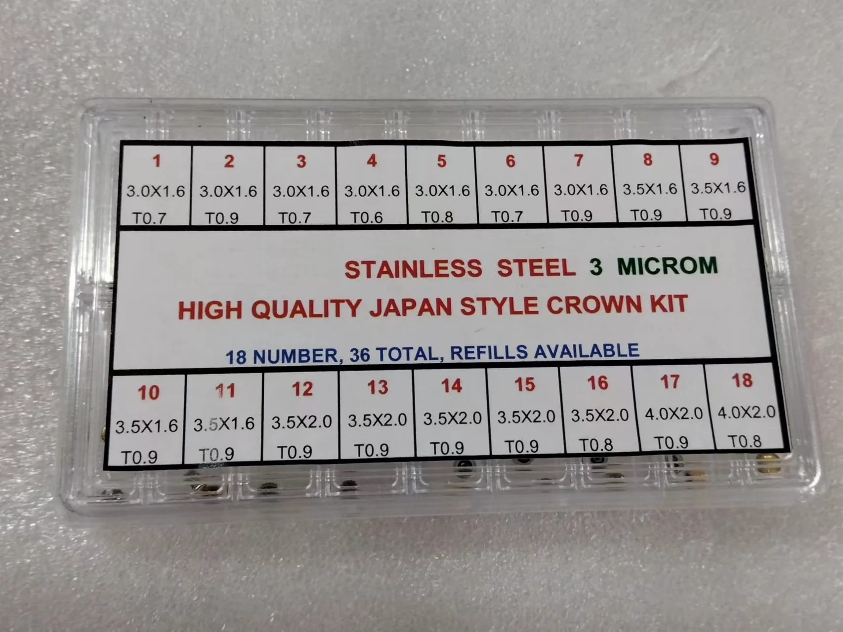 W604 Watch Parts Mixed Gold Silver Color Japan Style Steel Watch Crown Kit Tap 0.6mm 0.7mm 0.8mm 0.9mm